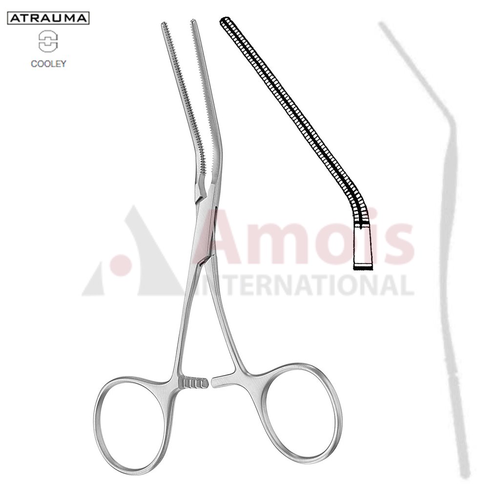 COOLEY ATRAUMATIC Vascular Clamp, Angled, 40 Degree, 120 mm (4 3/4″), Toothing COOLEY, Jaw Length: 50 mm