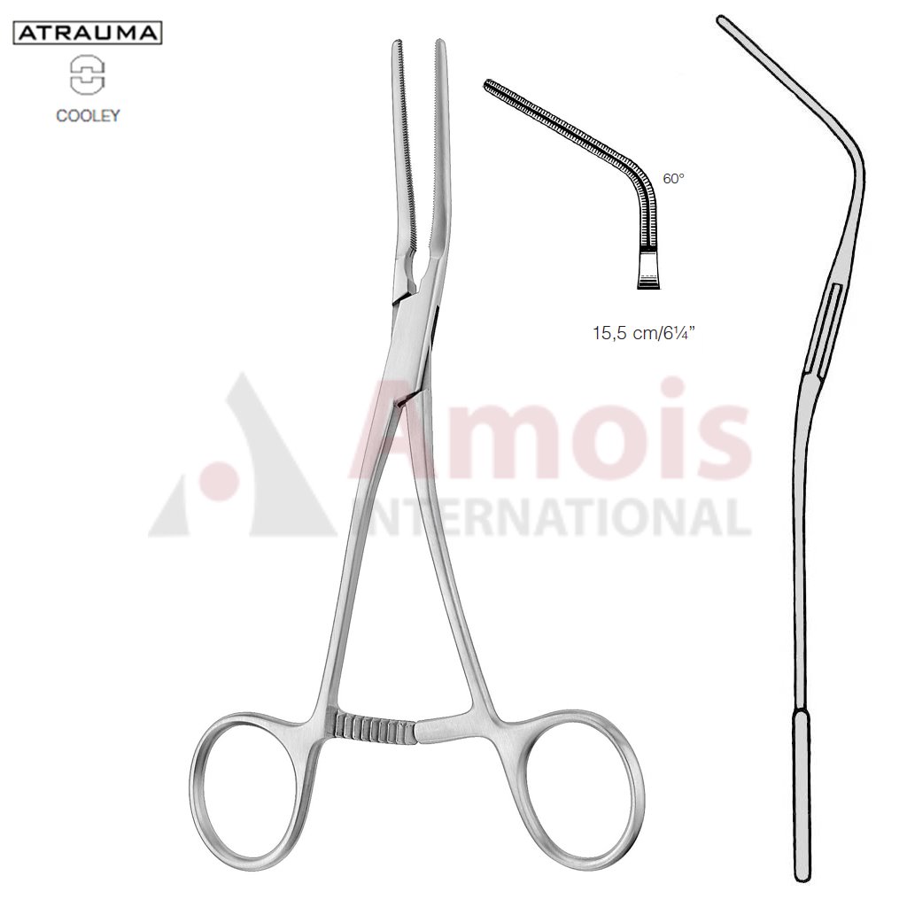 COOLEY ATRAUMATIC Vascular Clamp, Angled, 60 Degree, 160 mm (6 1/4″), Toothing COOLEY, Jaw Length: 35 mm, For Pediatrics