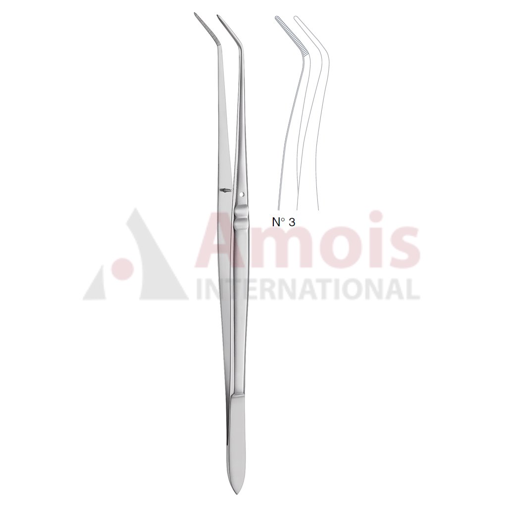 Flagg Dental Tweezer No. 3, 16cm (6 1/4″), Angled, Narrow, Smooth Handle With Recess