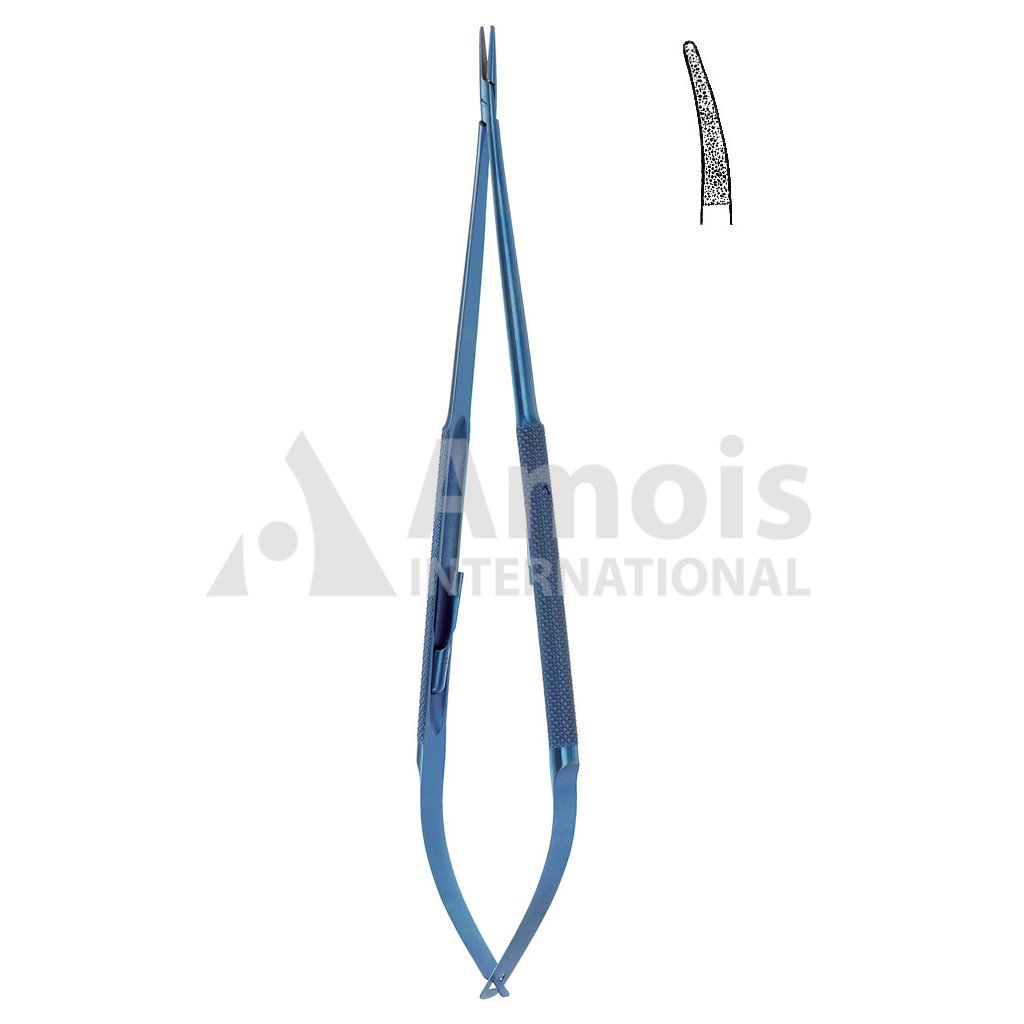 Titanium Micro Needle Holder With Catch Curved Diamond Coated Jaw