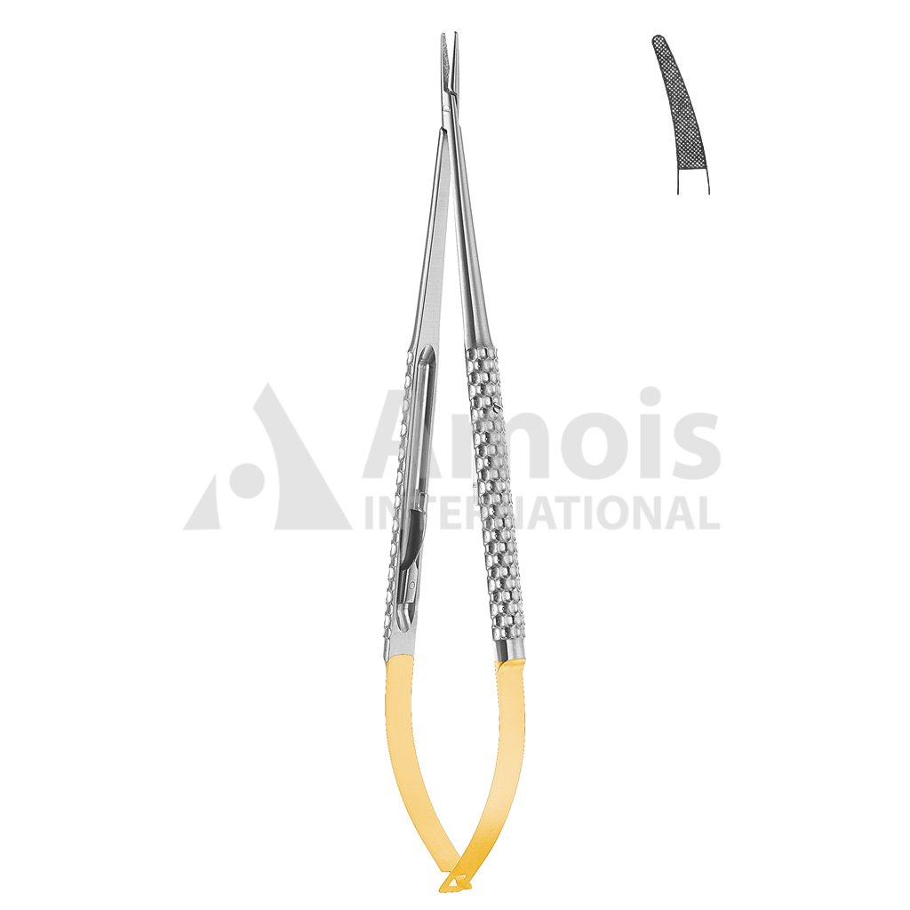 Toledo Micro Needle Holder Tc Without Catch Curved Diamond Coated Jaw